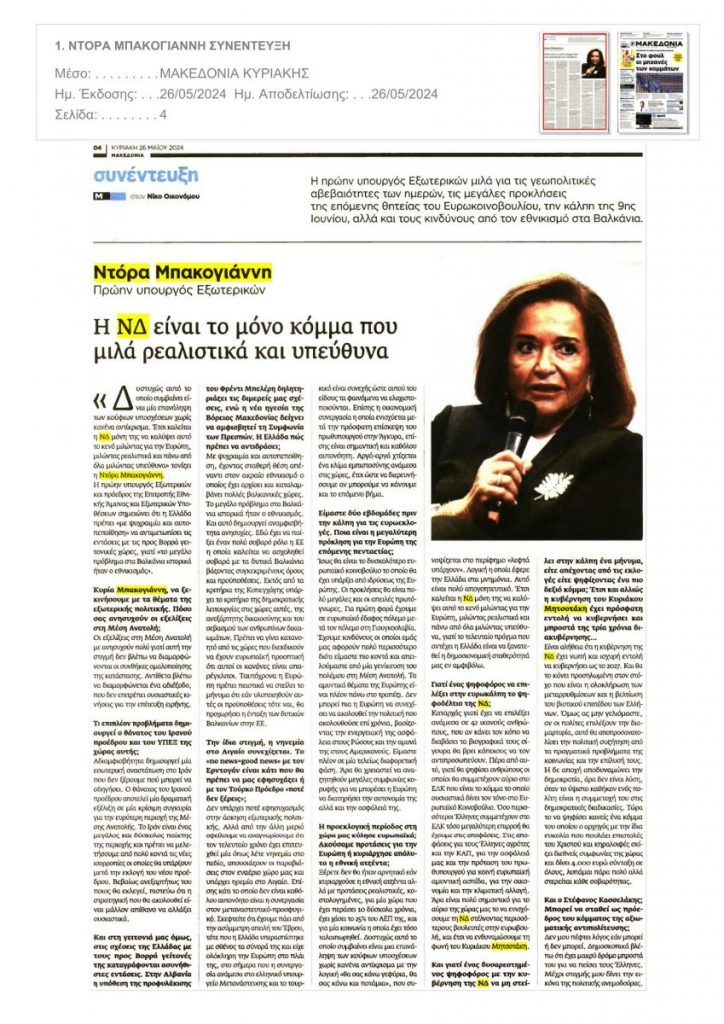 Ντόρα Μπακογιάννη: Η πρότασή μου θα μπορούσε να είναι το διάδοχο σχήμα του Ελσίνκι